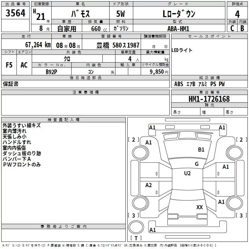 Honda VAMOS с аукциона Японии TAA Chubu лот № 3564