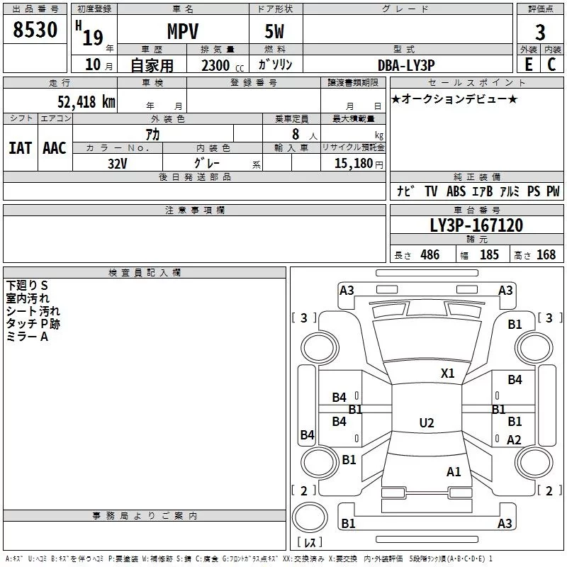 Mazda MPV с аукциона Японии TAA Chubu лот № 8530