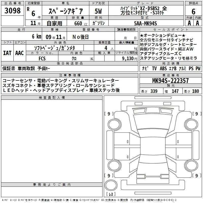 Suzuki SPACIA GEAR с аукциона Японии TAA Kanto лот № 3098