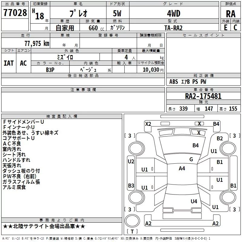Subaru PLEO с аукциона Японии TAA Chubu лот № 77028