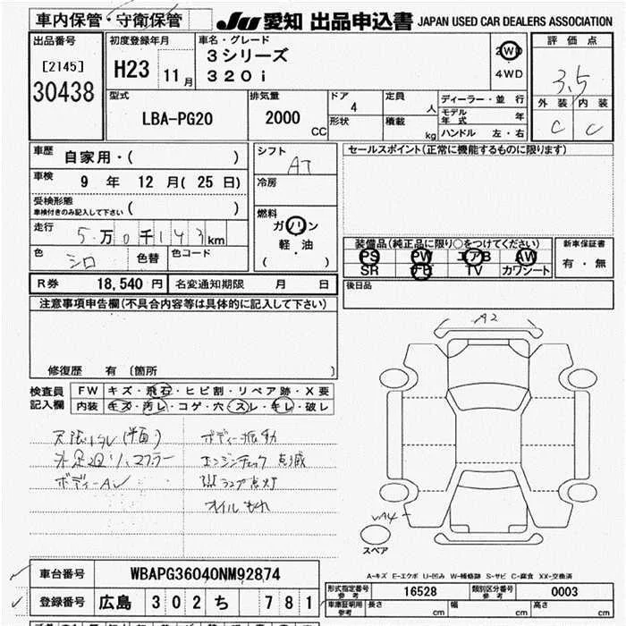BMW 3-Series с аукциона Японии JU Aichi лот № 30438