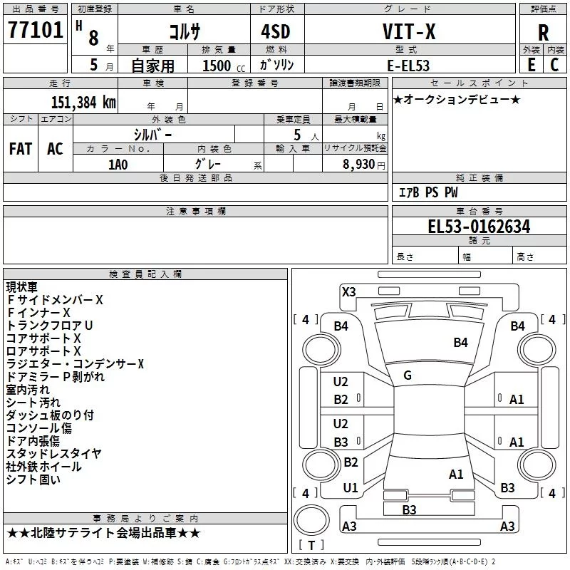 Toyota CORSA с аукциона Японии TAA Chubu лот № 77101