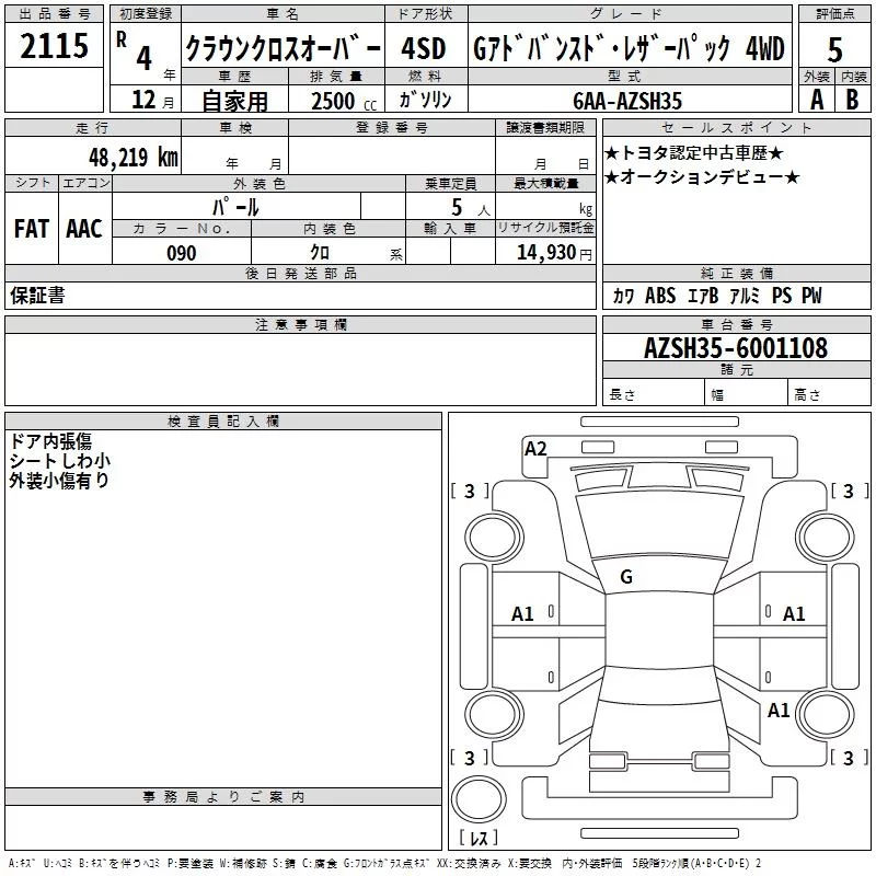 Toyota CROWN CROSSOVER с аукциона Японии TAA Chubu лот № 2115