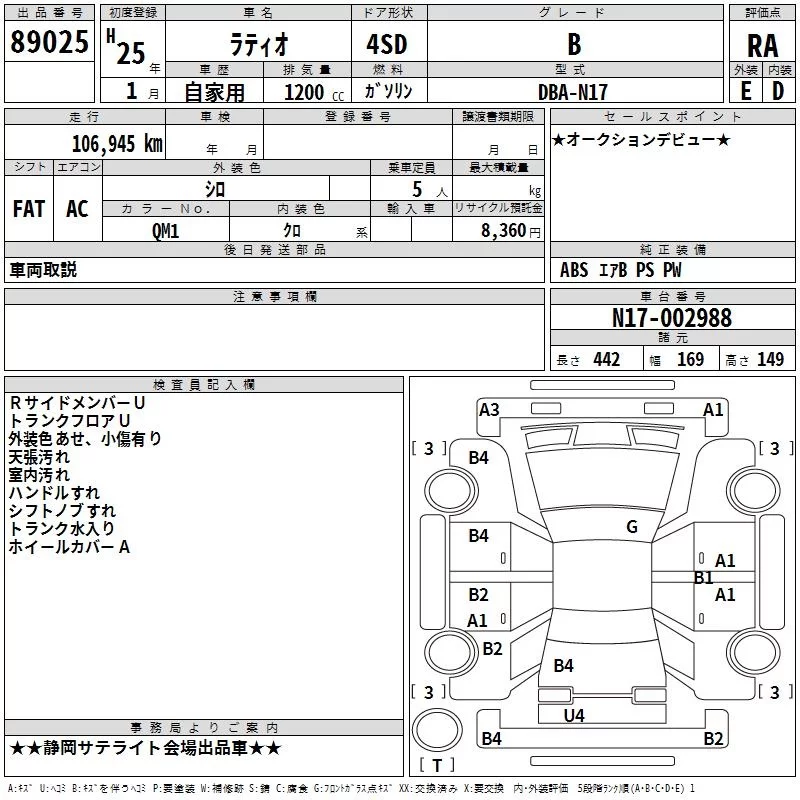 Nissan LATIO с аукциона Японии TAA Chubu лот № 89025