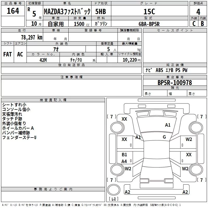 Mazda MAZDA3 с аукциона Японии TAA Kanto лот № 164