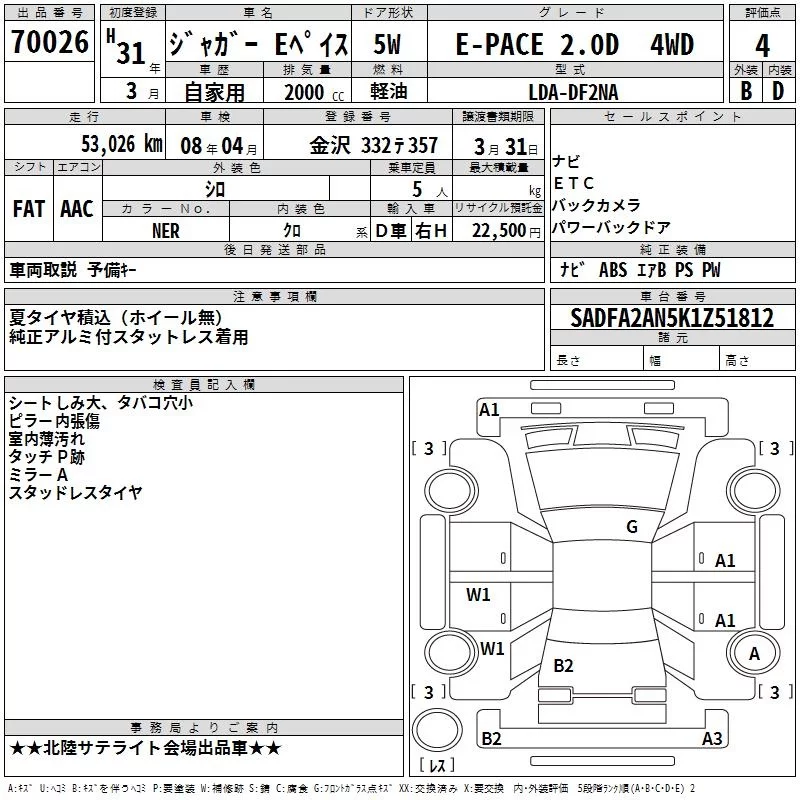 Jaguar E-PACE с аукциона Японии TAA Chubu лот № 70026