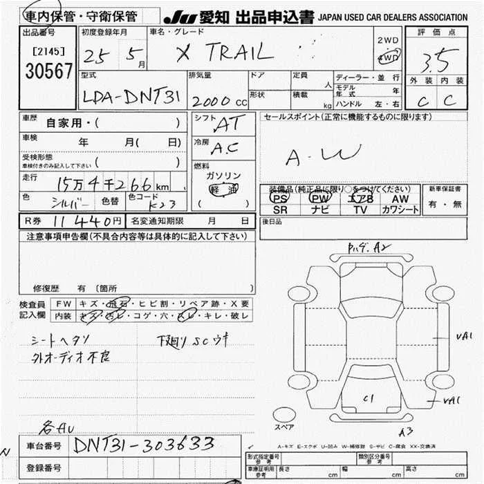 Nissan X-TRAIL с аукциона Японии JU Aichi лот № 30567