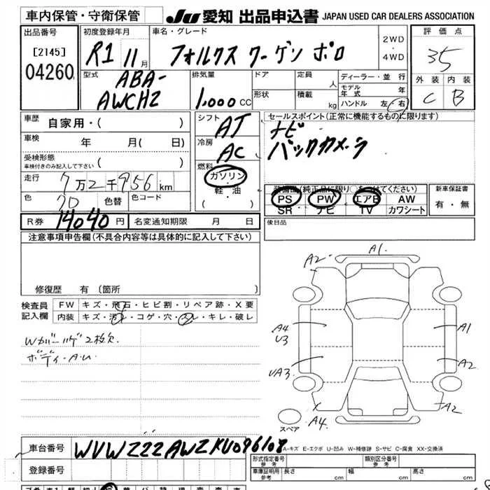 Volkswagen POLO с аукциона Японии JU Aichi лот № 4260