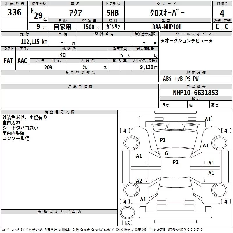 Toyota AQUA с аукциона Японии TAA Chubu лот № 336