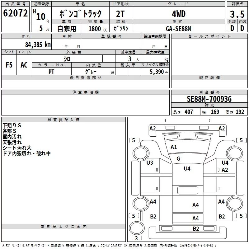 Mazda BONGO с аукциона Японии TAA Chubu лот № 62072