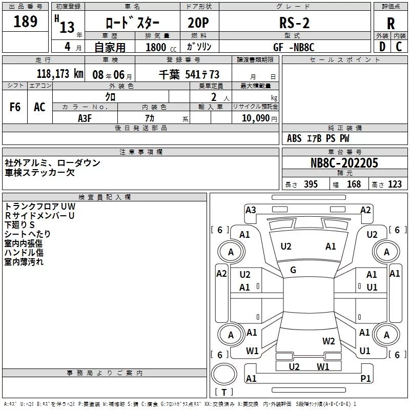 Mazda ROADSTER с аукциона Японии TAA Kanto лот № 189