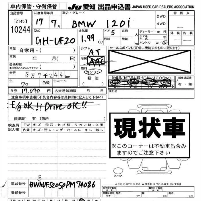 BMW 1-Series с аукциона Японии JU Aichi лот № 10244