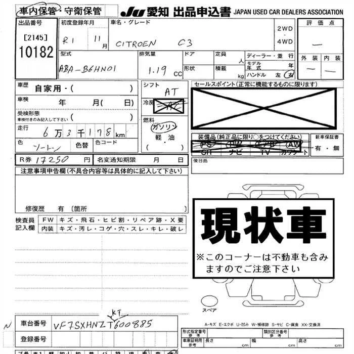 Citroen C3 с аукциона Японии JU Aichi лот № 10182