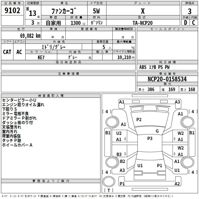Toyota FUNCARGO с аукциона Японии TAA Kanto лот № 9102