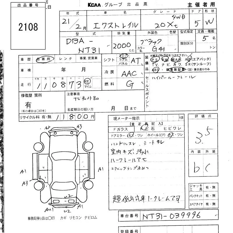 Nissan X-TRAIL с аукциона Японии KCAA Fukuoka лот № 2108