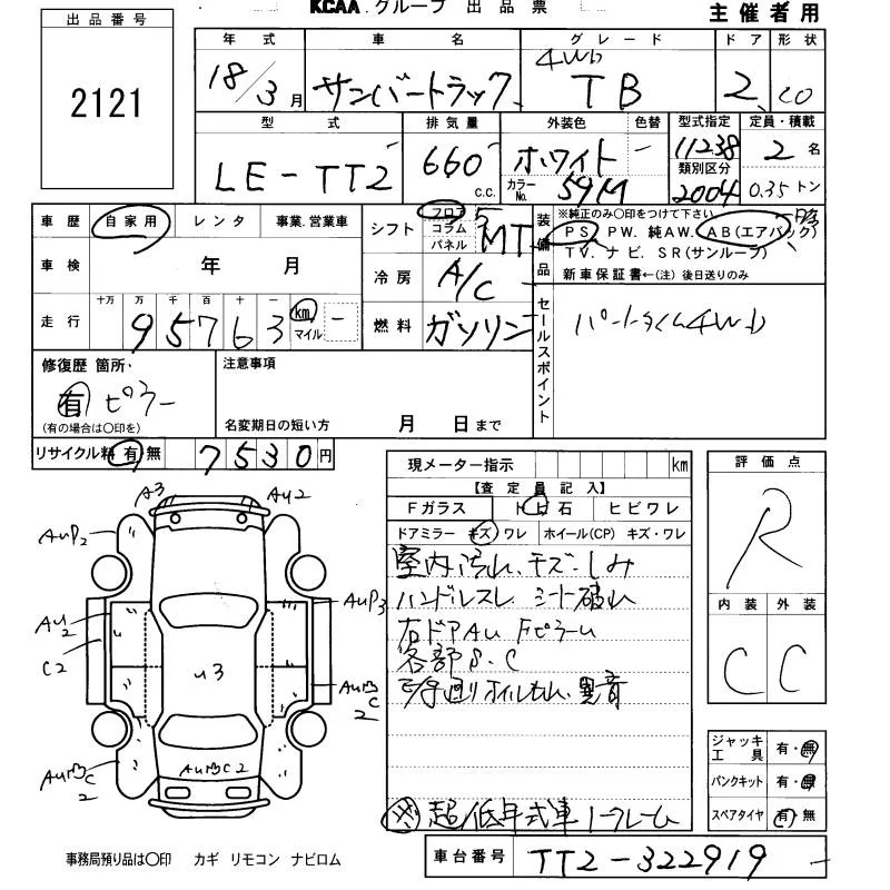 Subaru SAMBAR с аукциона Японии KCAA Fukuoka лот № 2121