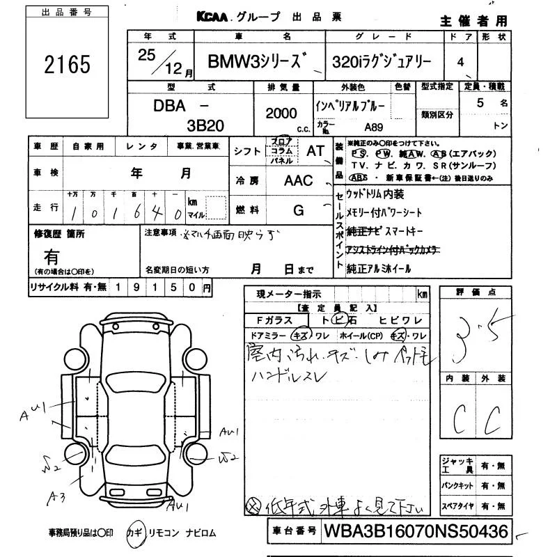 BMW 3-Series с аукциона Японии KCAA Fukuoka лот № 2165