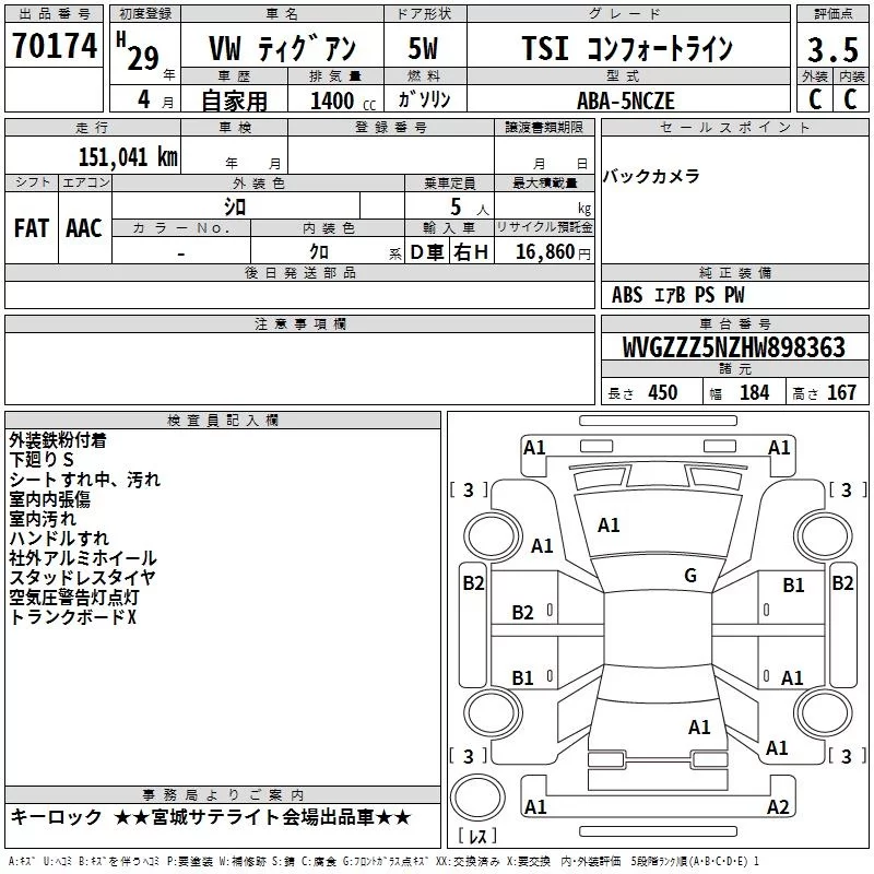 Volkswagen TIGUAN с аукциона Японии TAA Tohoku лот № 70174