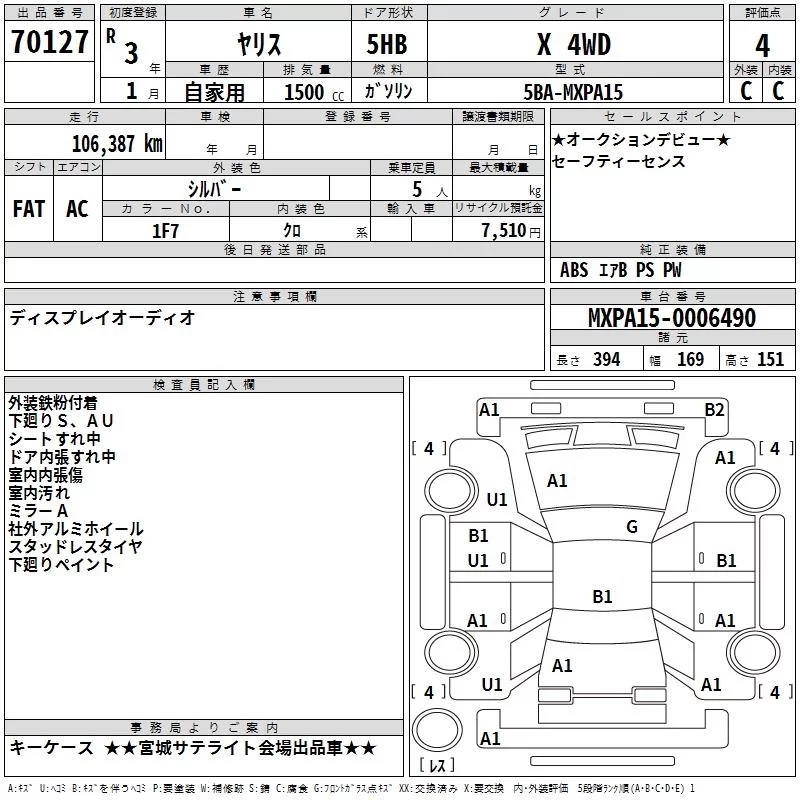 Toyota YARIS с аукциона Японии TAA Tohoku лот № 70127