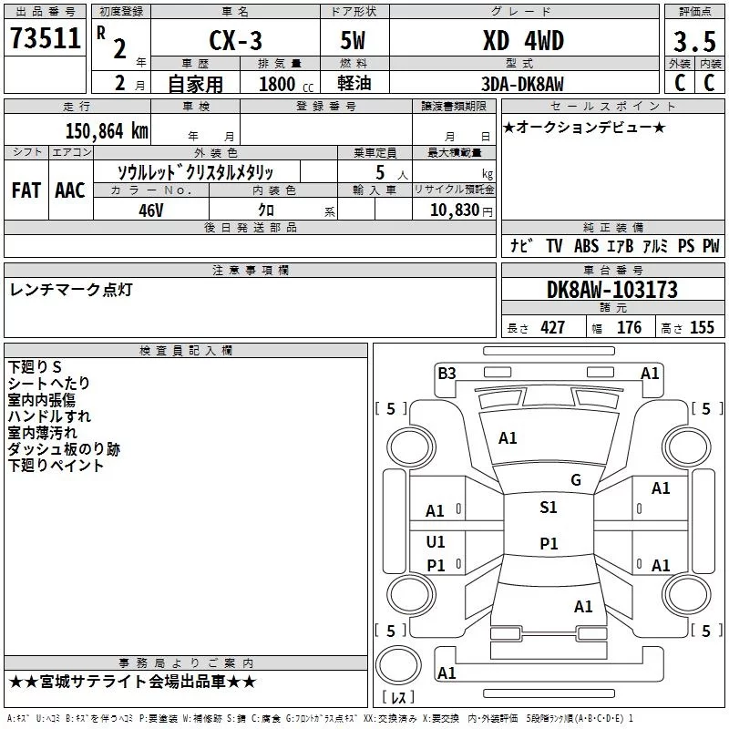 Mazda CX-3 с аукциона Японии TAA Tohoku лот № 73511