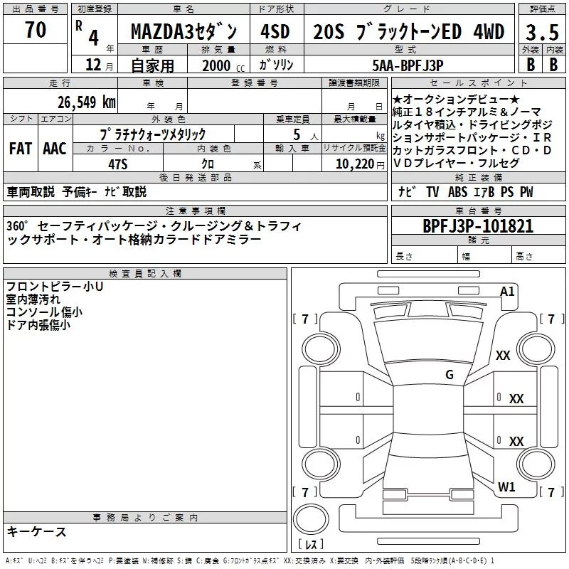 Mazda MAZDA3 с аукциона Японии TAA Tohoku лот № 70