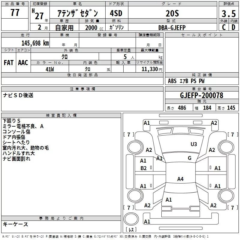 Mazda ATENZA SEDAN с аукциона Японии TAA Tohoku лот № 77