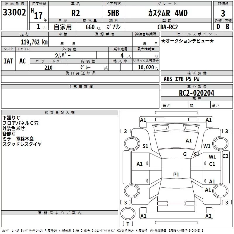 Subaru R2 с аукциона Японии TAA Tohoku лот № 33002