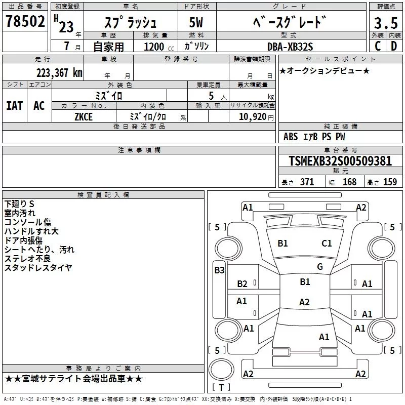Suzuki SPLASH с аукциона Японии TAA Tohoku лот № 78502