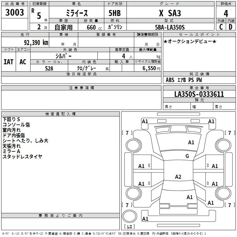 Daihatsu MIRA E S с аукциона Японии TAA Tohoku лот № 3003