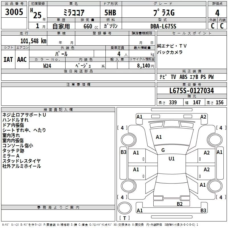 Daihatsu MIRA с аукциона Японии TAA Tohoku лот № 3005