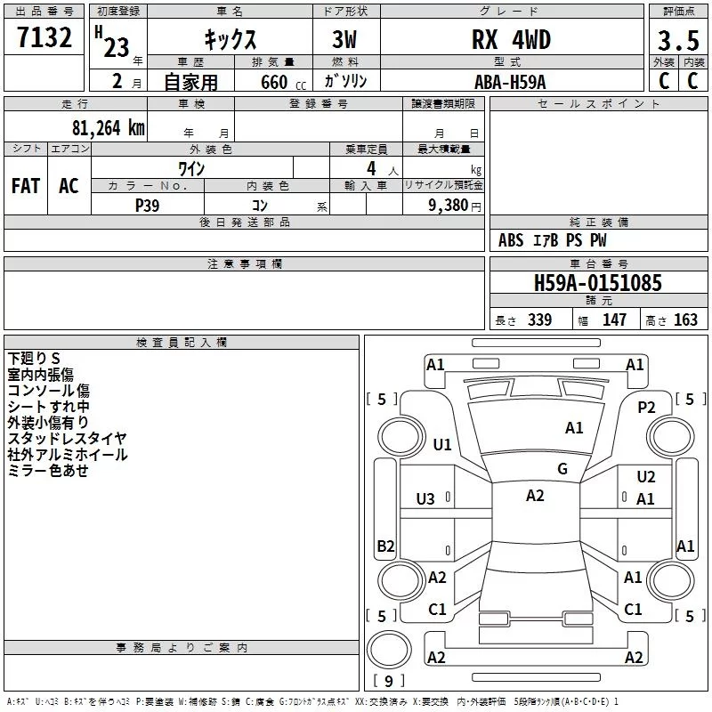 Nissan KIX с аукциона Японии TAA Tohoku лот № 7132