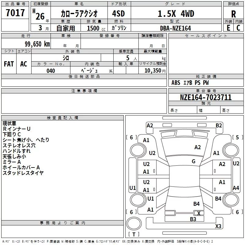 Toyota COROLLA AXIO с аукциона Японии TAA Hokkaido лот № 7017
