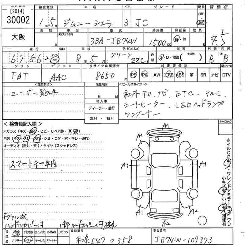 Suzuki JIMNY SIERRA с аукциона Японии MIRIVE Osaka лот № 30002