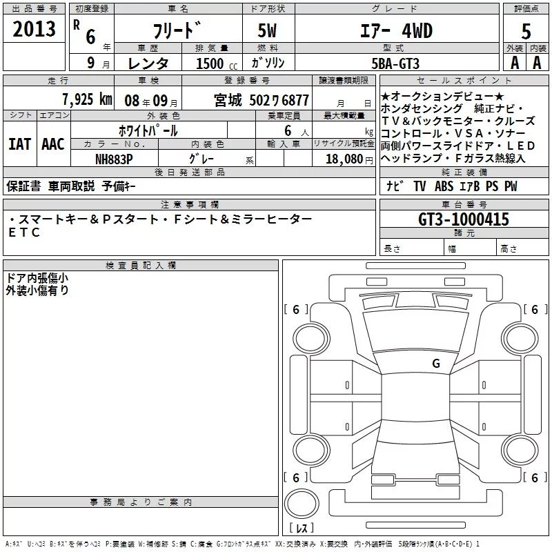 Honda FREED с аукциона Японии TAA Hokkaido лот № 2013