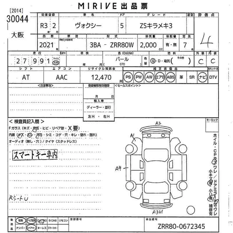 Toyota VOXY с аукциона Японии MIRIVE Osaka лот № 30044