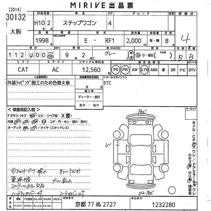 Honda STEP WAGON с аукциона Японии MIRIVE Osaka лот № 30132