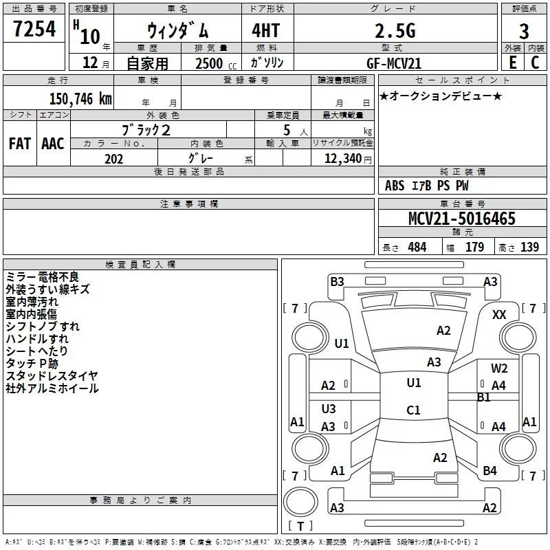 Toyota WINDOM с аукциона Японии TAA Hokkaido лот № 7254