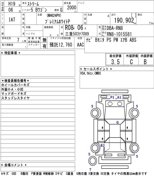Honda STREAM с аукциона Японии NAA Nagoya лот № 4026