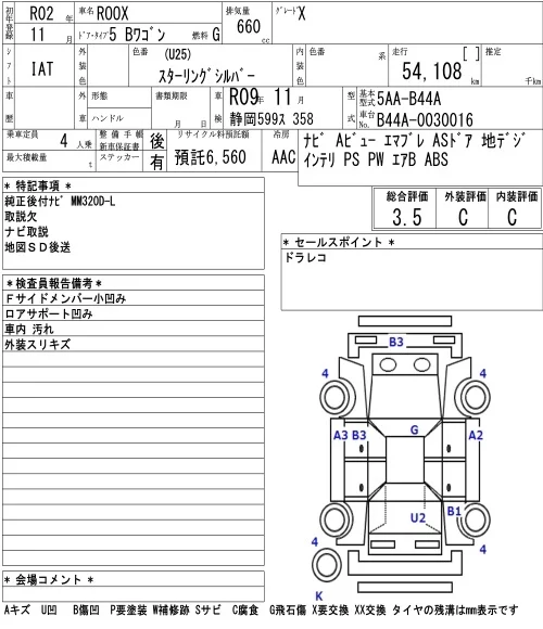 Nissan ROOX с аукциона Японии NAA Nagoya лот № 3009