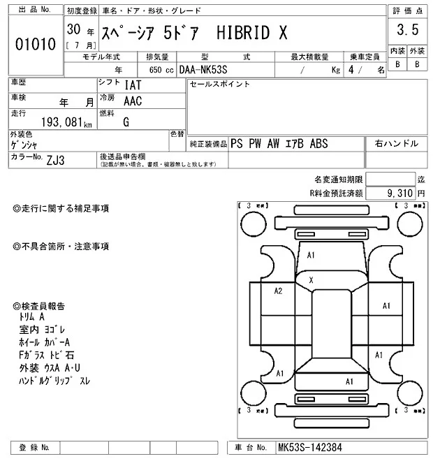 Suzuki SPACIA с аукциона Японии ARAI Oyama лот № 1010