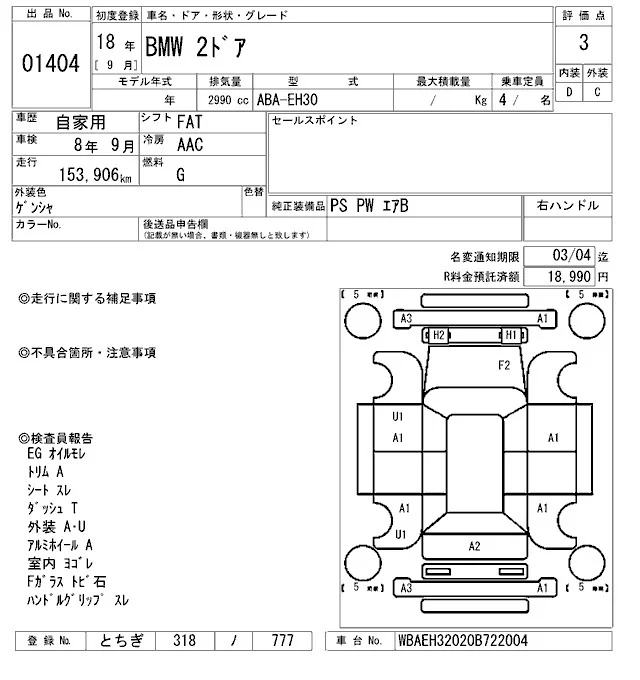 BMW 6-Series с аукциона Японии ARAI Oyama лот № 1404