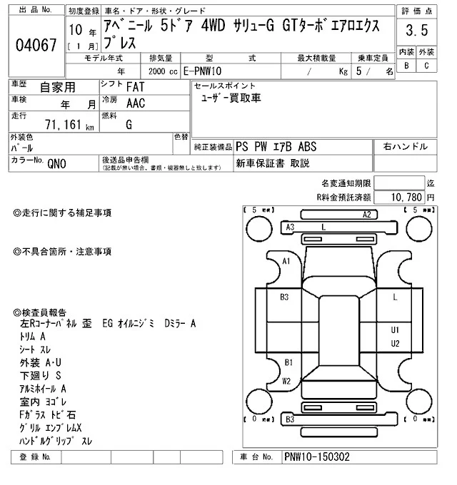 Nissan AVENIR WAGON с аукциона Японии ARAI Oyama лот № 4067