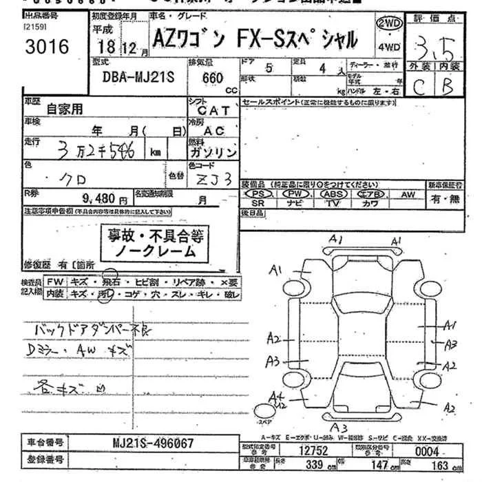 Mazda AZ WAGON с аукциона Японии JU Kanagawa лот № 3016