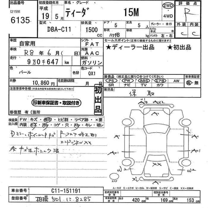Nissan TIIDA с аукциона Японии JU Kanagawa лот № 6135