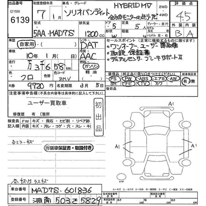 Suzuki SOLIO с аукциона Японии JU Kanagawa лот № 6139