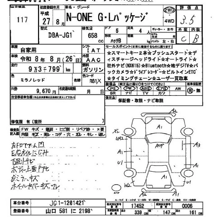 Honda N ONE с аукциона Японии JU Hiroshima лот № 117