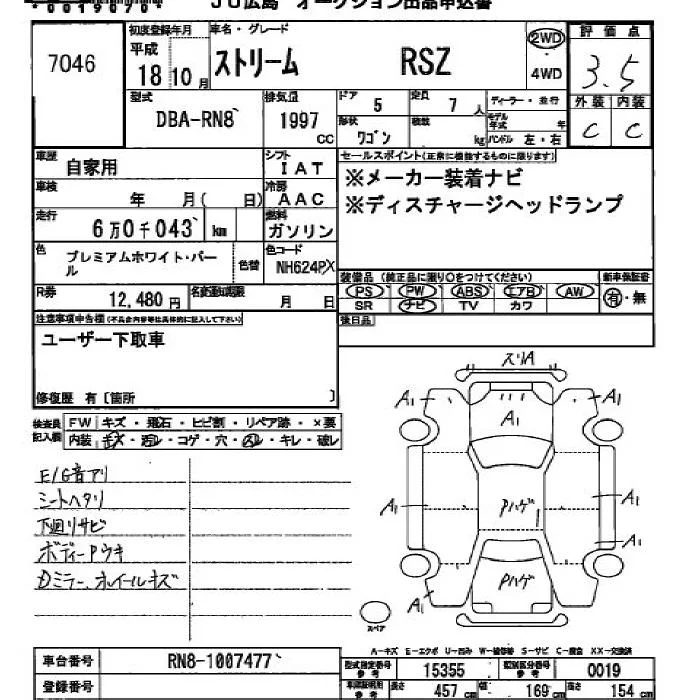 Honda STREAM с аукциона Японии JU Hiroshima лот № 7046