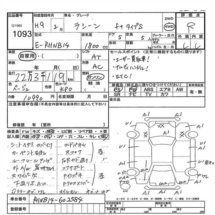 Nissan RASHEEN с аукциона Японии JU Gunma лот № 1093