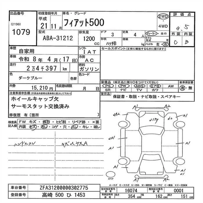 Fiat 500 с аукциона Японии JU Gunma лот № 1079
