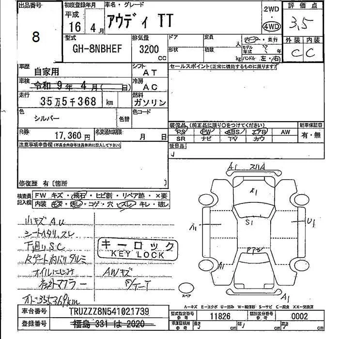 Audi TT с аукциона Японии JU Fukushima лот № 8